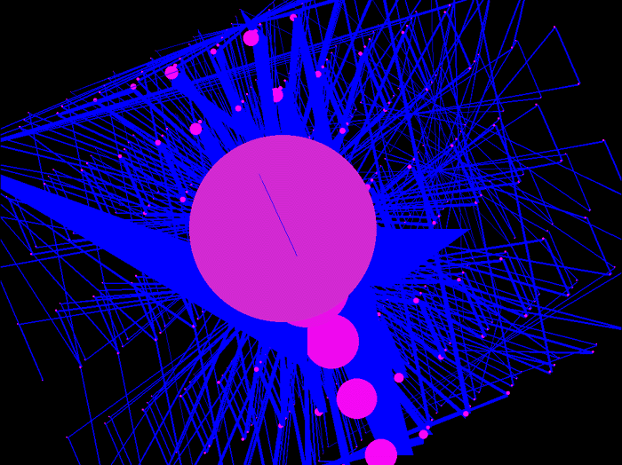 The colours were deliberately garish to highlight the three elements: vertices, the polygon edges joining the vertices, and colours indicating the distance of the (spherical) vertices.