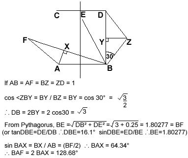 My proof, like my experience of the world, will never be complete. When mathematically checked the angles are within a fraction of a degree, and that’s not exact, but captivated by the symbolism, I persist in following that elusive meandering line towards a solution of Euclidian elegance that will prove its symmetry without resorting to the clumsiness of sines, cosines and the like.